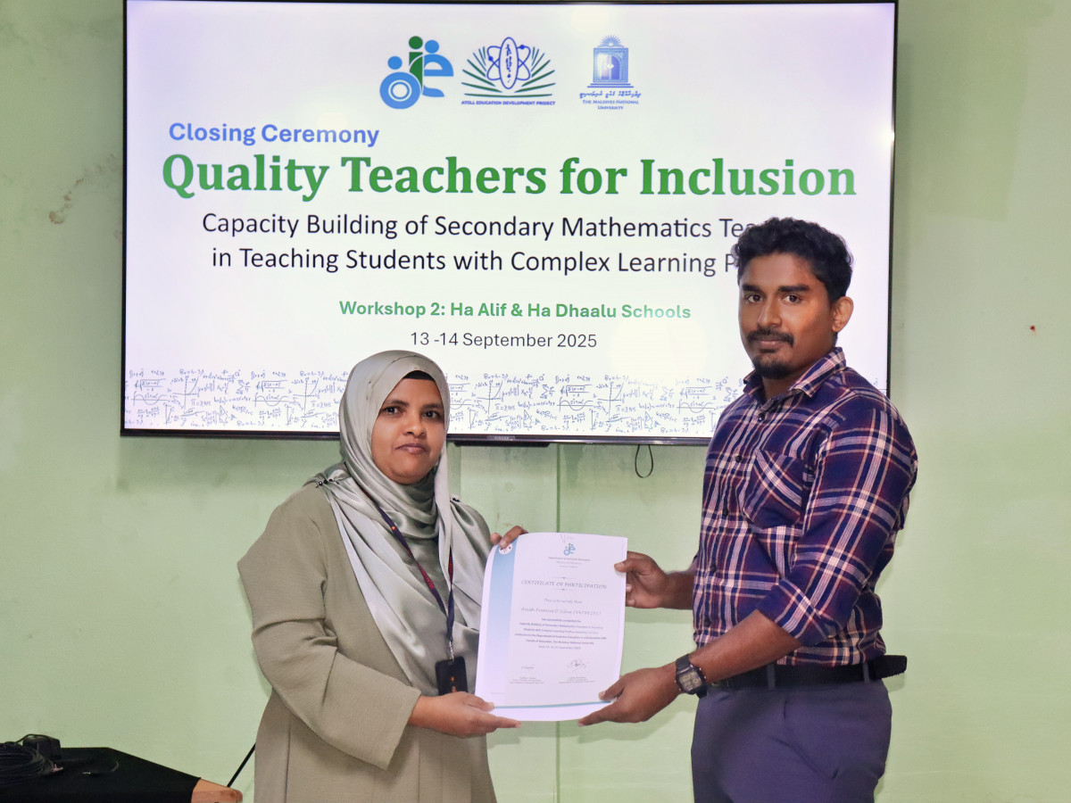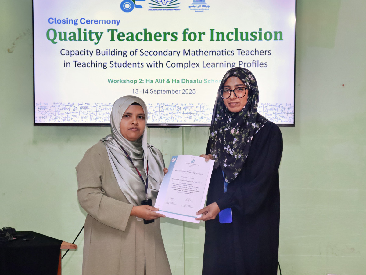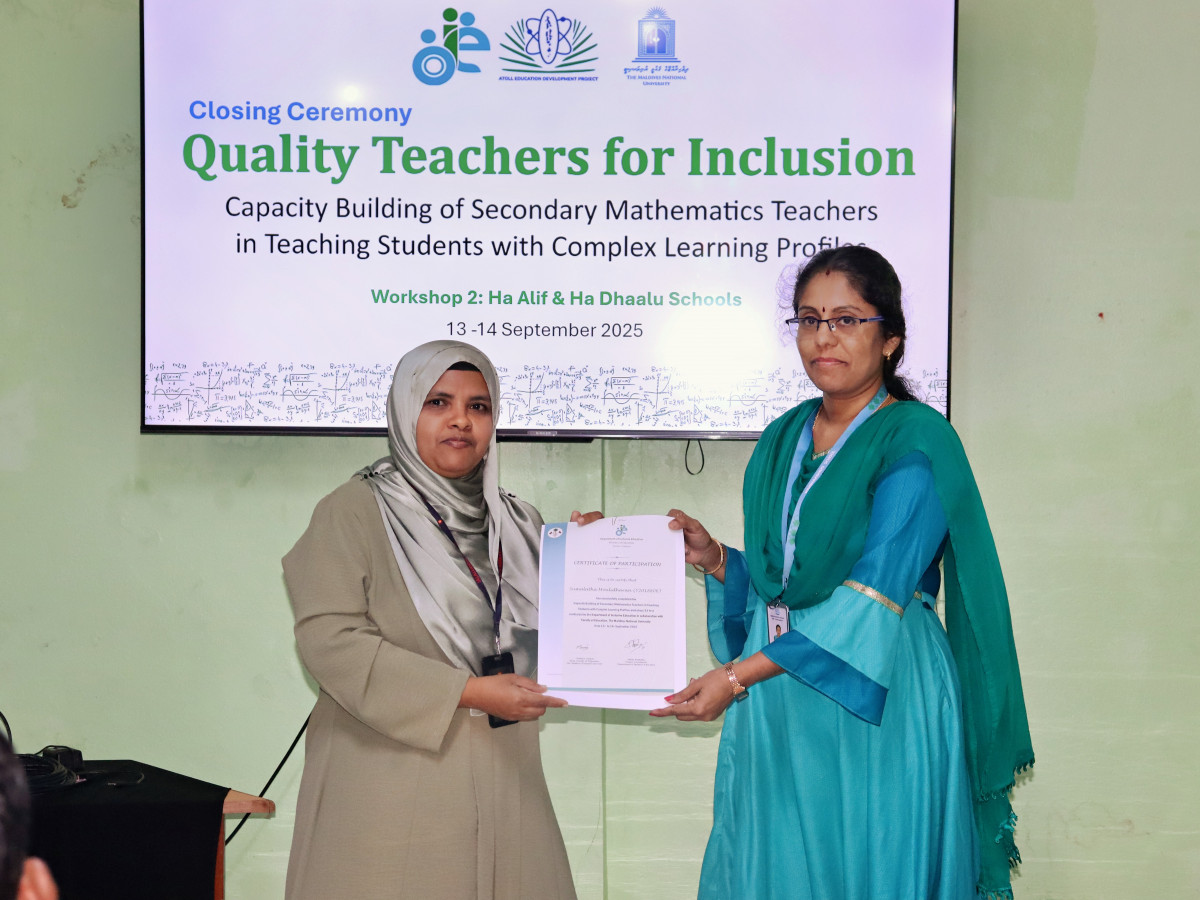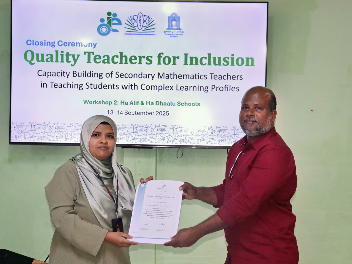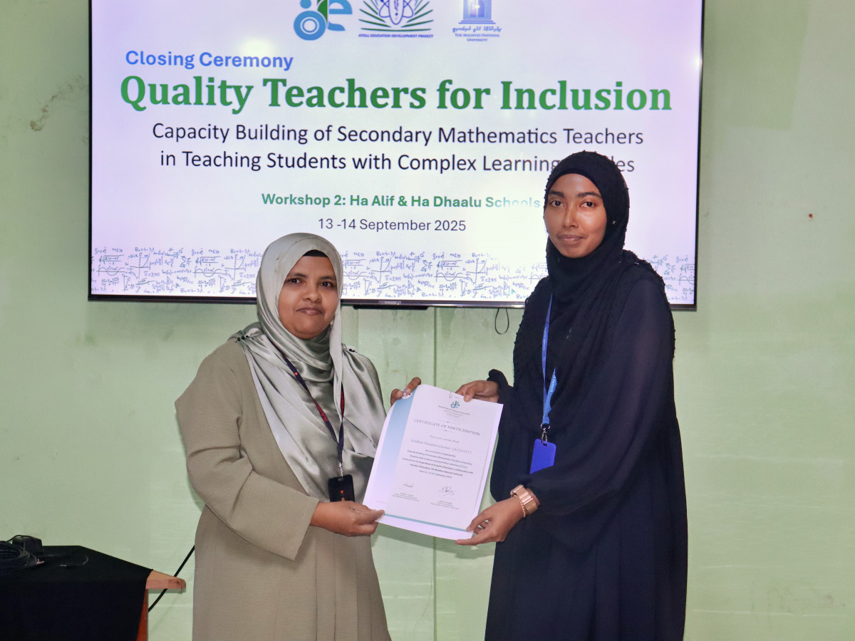 ސާނަވީ ސްކޫލްތަކުގައި ހިސާބު ކިޔަވާދޭ ޓީޗަރުންނަށް އަމާޒުކޮށްގެން ކުރިއަށް ގެންދިޔަ އުނގެނުމުގައި ޚާއްޞައެހީއަށް ބޭނުންވާ ދަރިވަރުންނަށް އުނގަންނާދޭނެ ގޮތުގެ ތަމްރީނު ޕްރޮގްރާމް (ހއ ހދ)
