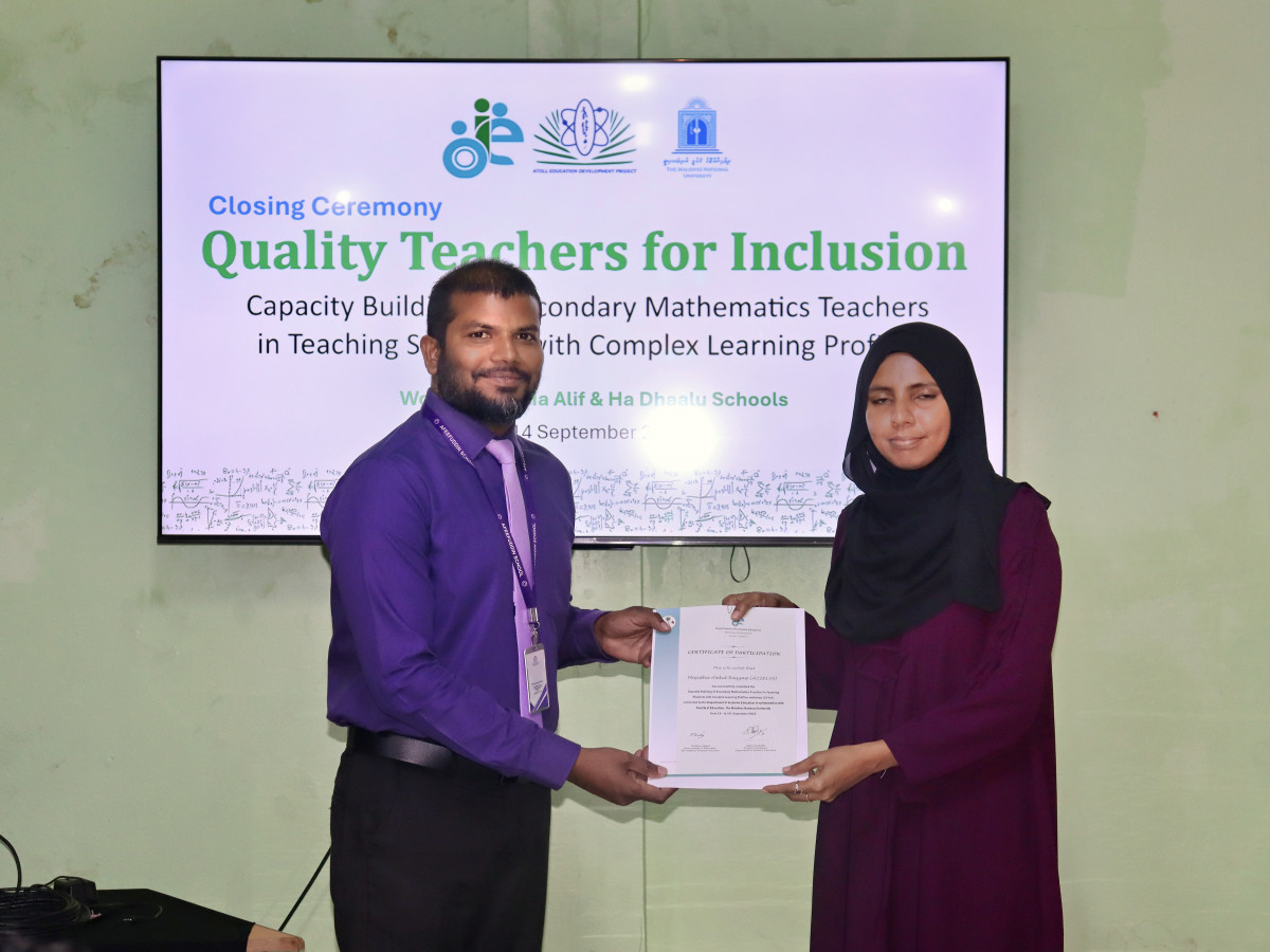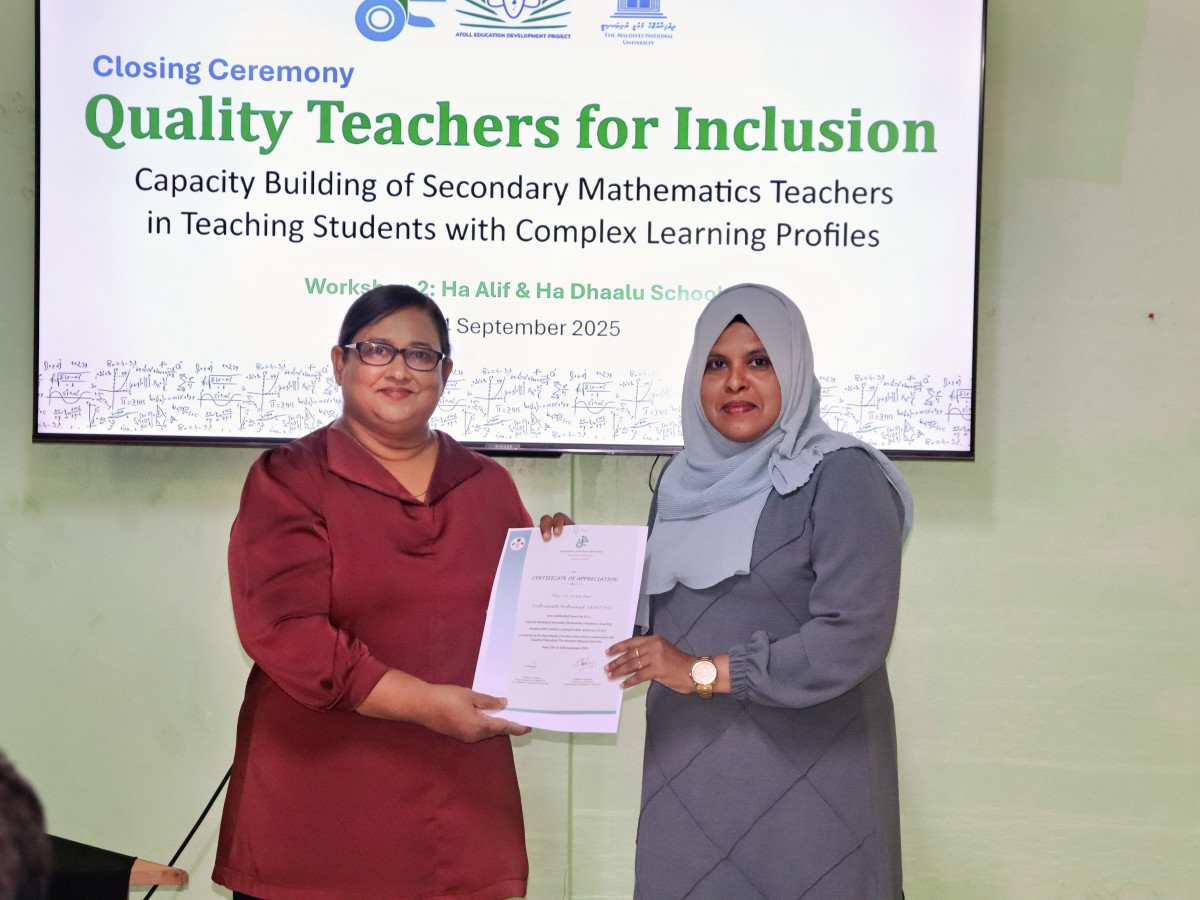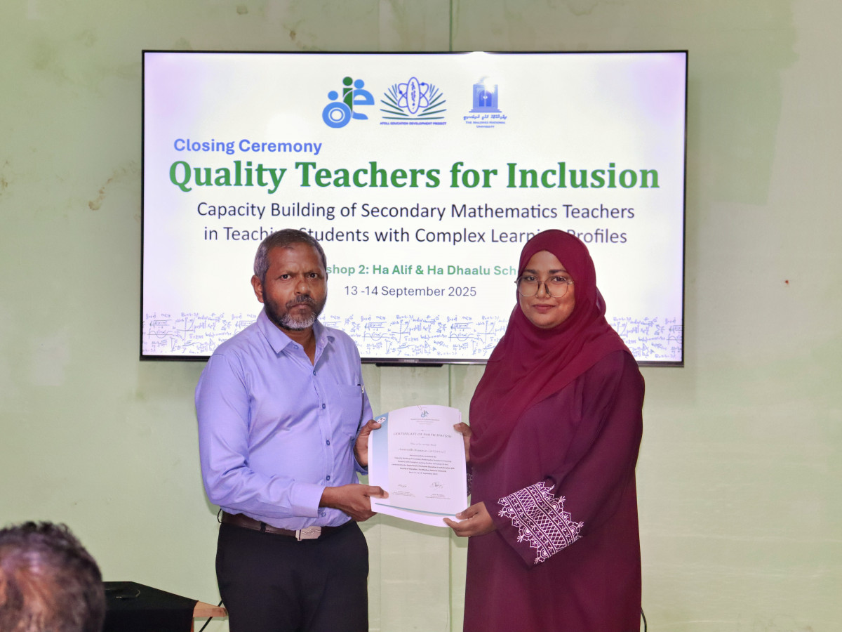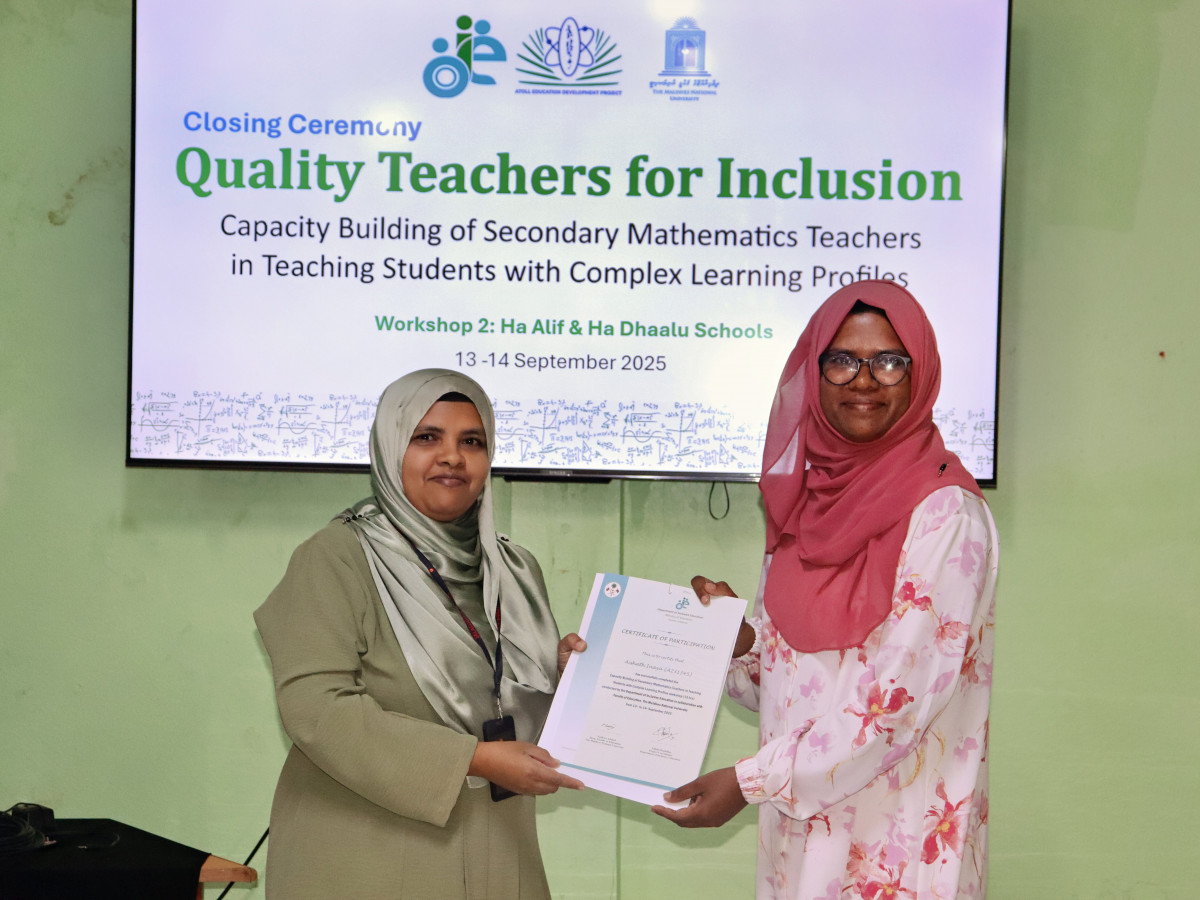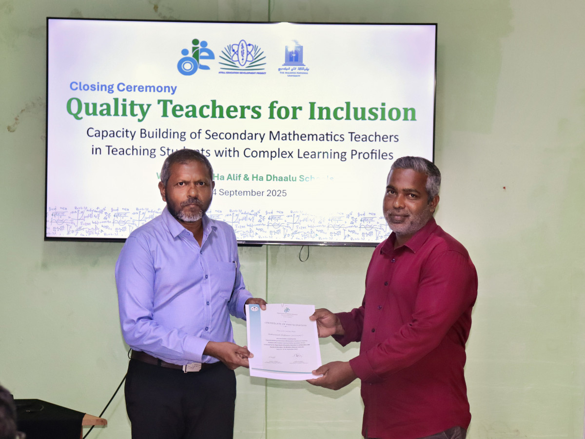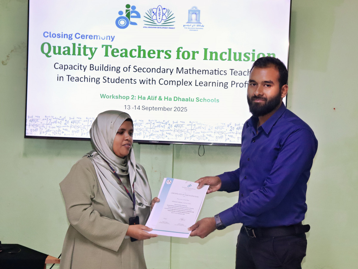 ސާނަވީ ސްކޫލްތަކުގައި ހިސާބު ކިޔަވާދޭ ޓީޗަރުންނަށް އަމާޒުކޮށްގެން ކުރިއަށް ގެންދިޔަ އުނގެނުމުގައި ޚާއްޞައެހީއަށް ބޭނުންވާ ދަރިވަރުންނަށް އުނގަންނާދޭނެ ގޮތުގެ ތަމްރީނު ޕްރޮގްރާމް (ހއ ހދ)
