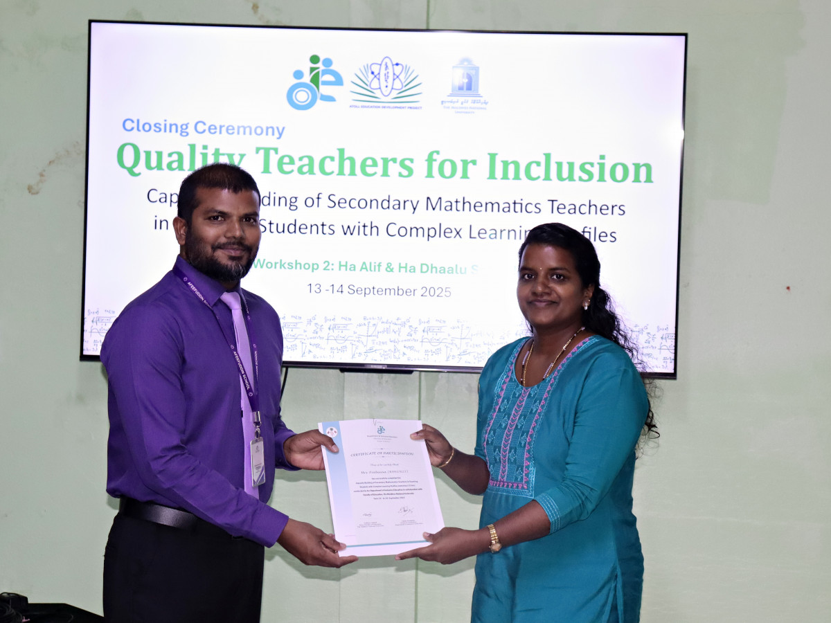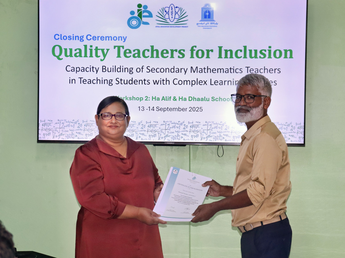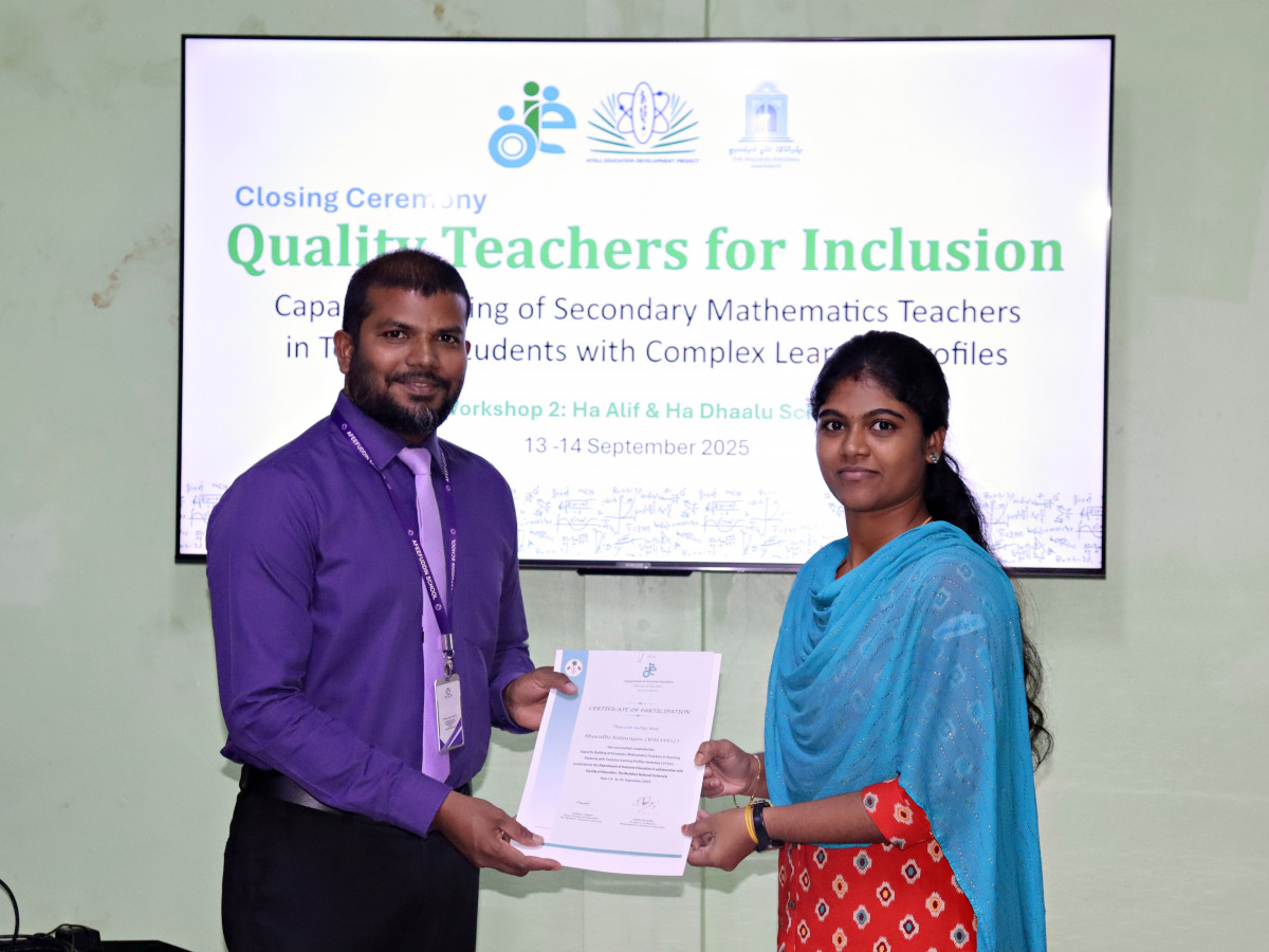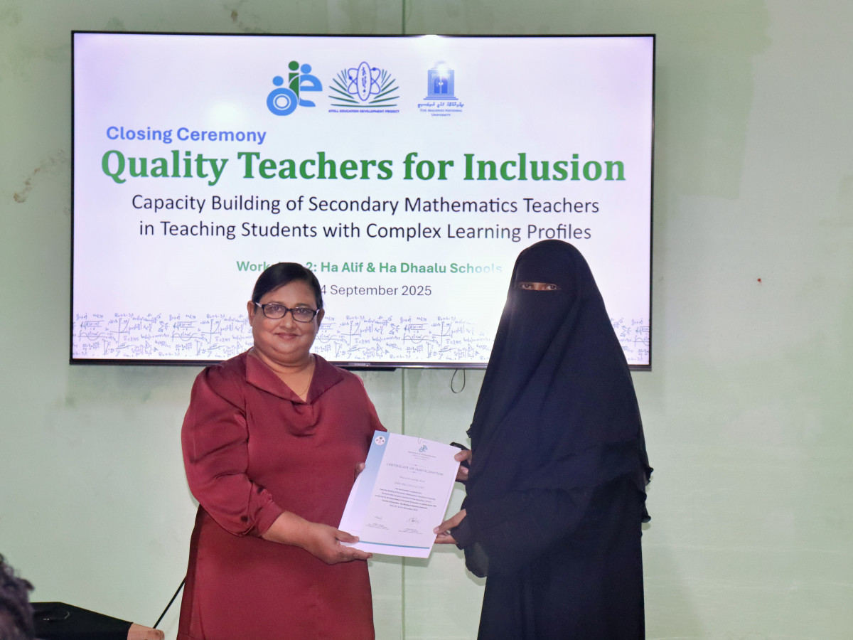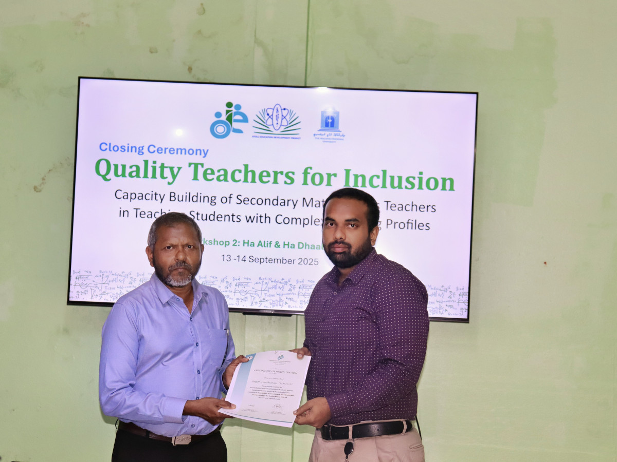 ސާނަވީ ސްކޫލްތަކުގައި ހިސާބު ކިޔަވާދޭ ޓީޗަރުންނަށް އަމާޒުކޮށްގެން ކުރިއަށް ގެންދިޔަ އުނގެނުމުގައި ޚާއްޞައެހީއަށް ބޭނުންވާ ދަރިވަރުންނަށް އުނގަންނާދޭނެ ގޮތުގެ ތަމްރީނު ޕްރޮގްރާމް (ހއ ހދ)