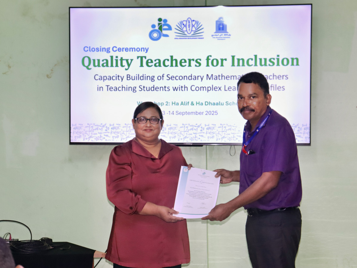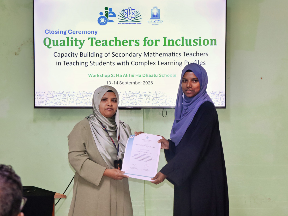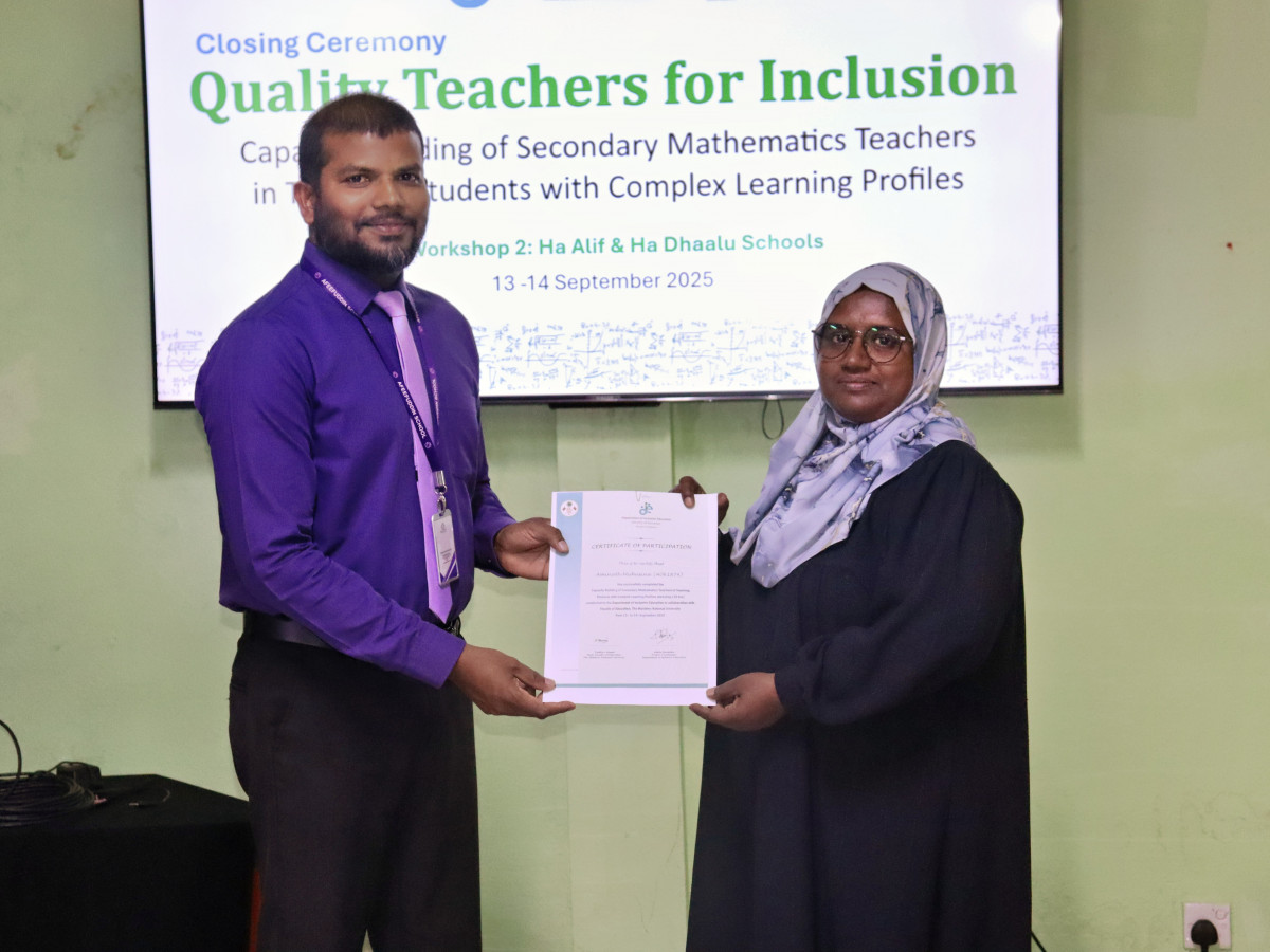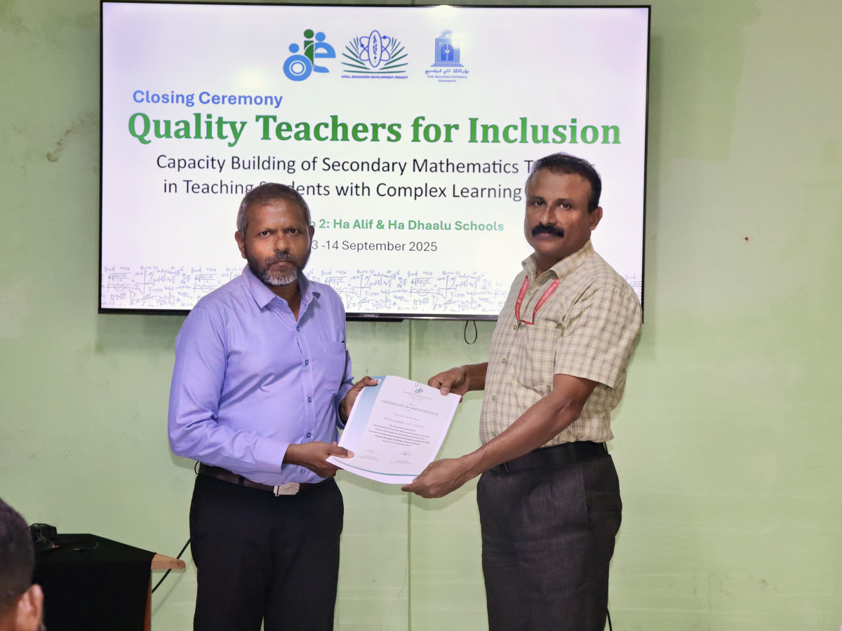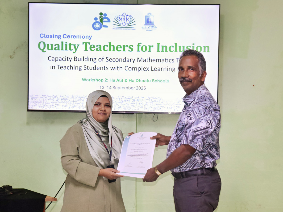 ސާނަވީ ސްކޫލްތަކުގައި ހިސާބު ކިޔަވާދޭ ޓީޗަރުންނަށް އަމާޒުކޮށްގެން ކުރިއަށް ގެންދިޔަ އުނގެނުމުގައި ޚާއްޞައެހީއަށް ބޭނުންވާ ދަރިވަރުންނަށް އުނގަންނާދޭނެ ގޮތުގެ ތަމްރީނު ޕްރޮގްރާމް (ހއ ހދ)