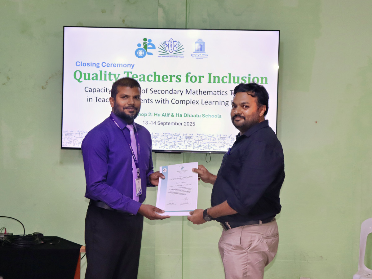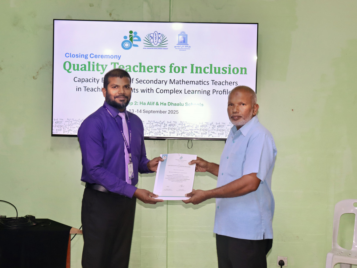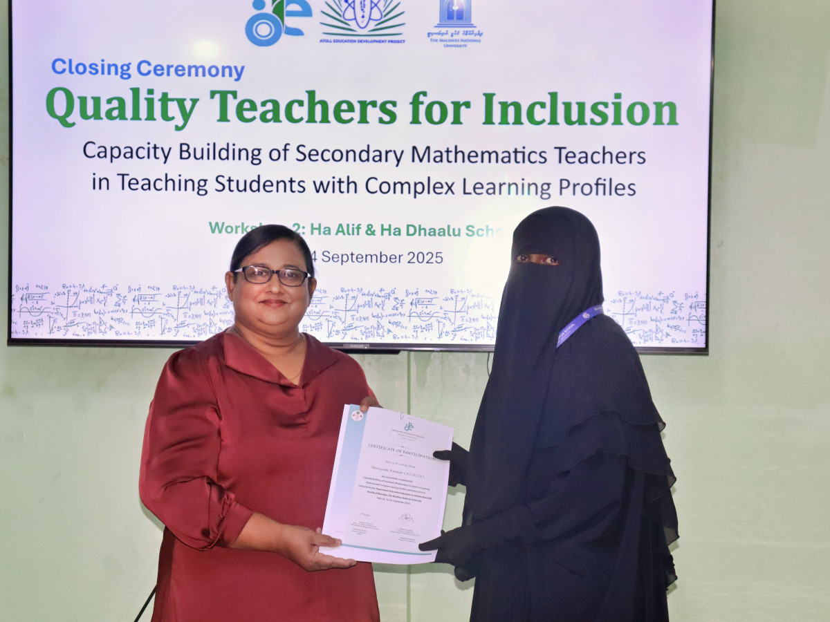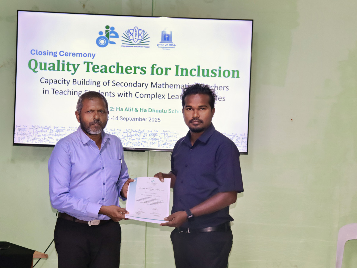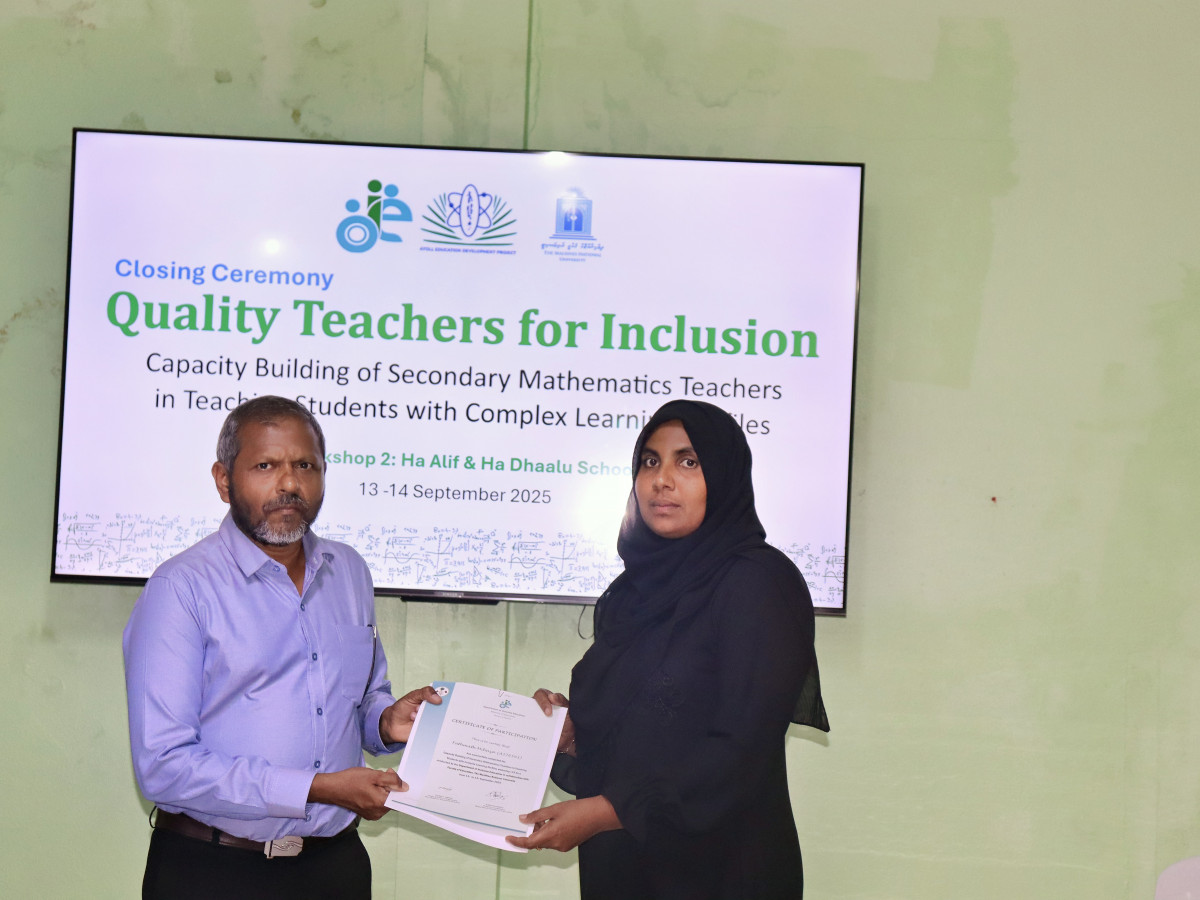 ސާނަވީ ސްކޫލްތަކުގައި ހިސާބު ކިޔަވާދޭ ޓީޗަރުންނަށް އަމާޒުކޮށްގެން ކުރިއަށް ގެންދިޔަ އުނގެނުމުގައި ޚާއްޞައެހީއަށް ބޭނުންވާ ދަރިވަރުންނަށް އުނގަންނާދޭނެ ގޮތުގެ ތަމްރީނު ޕްރޮގްރާމް (ހއ ހދ)