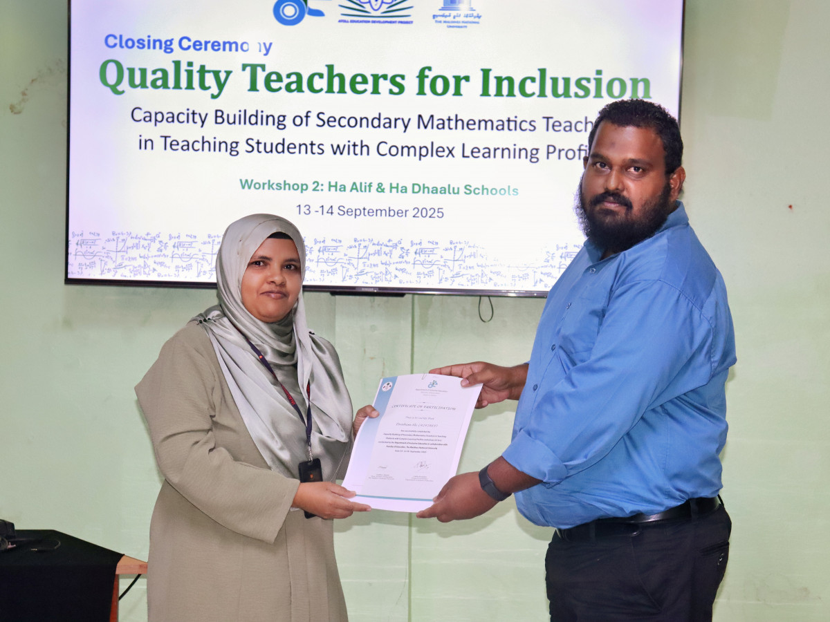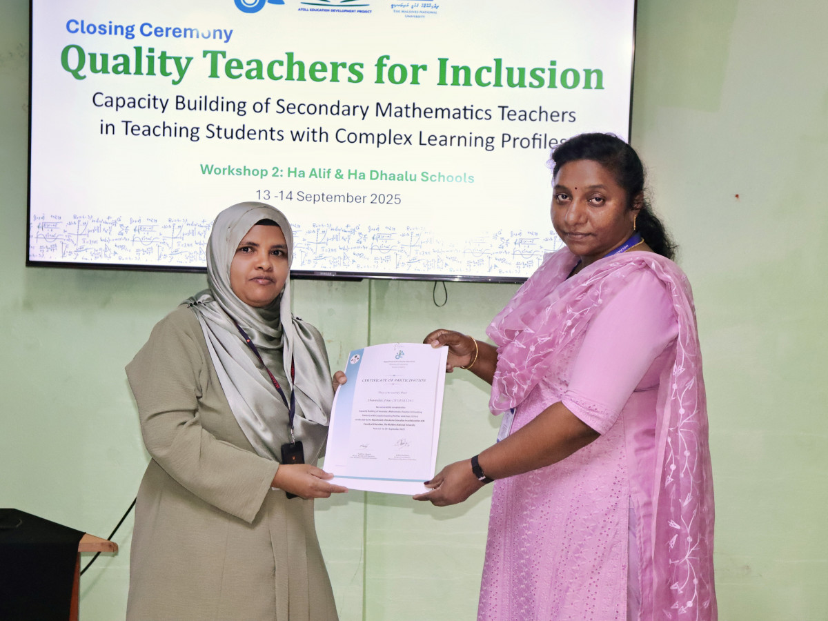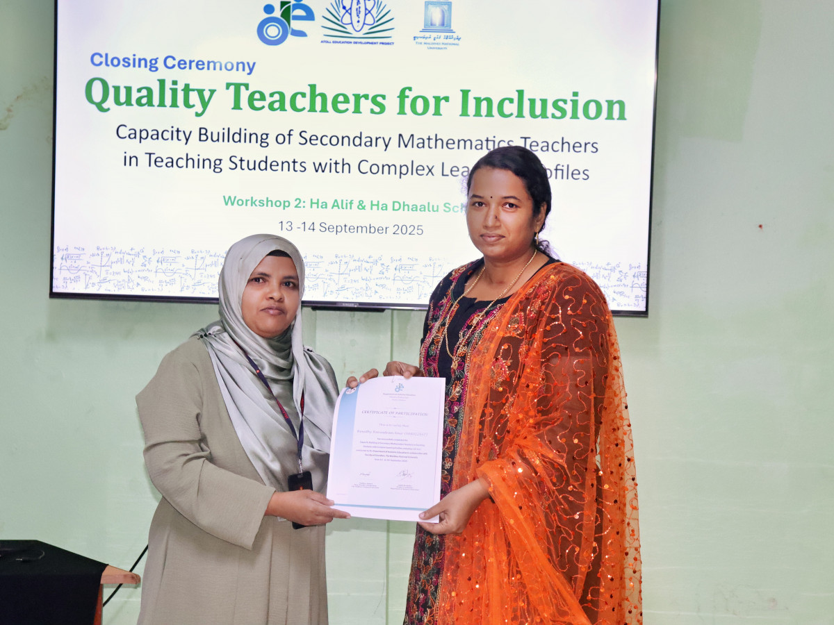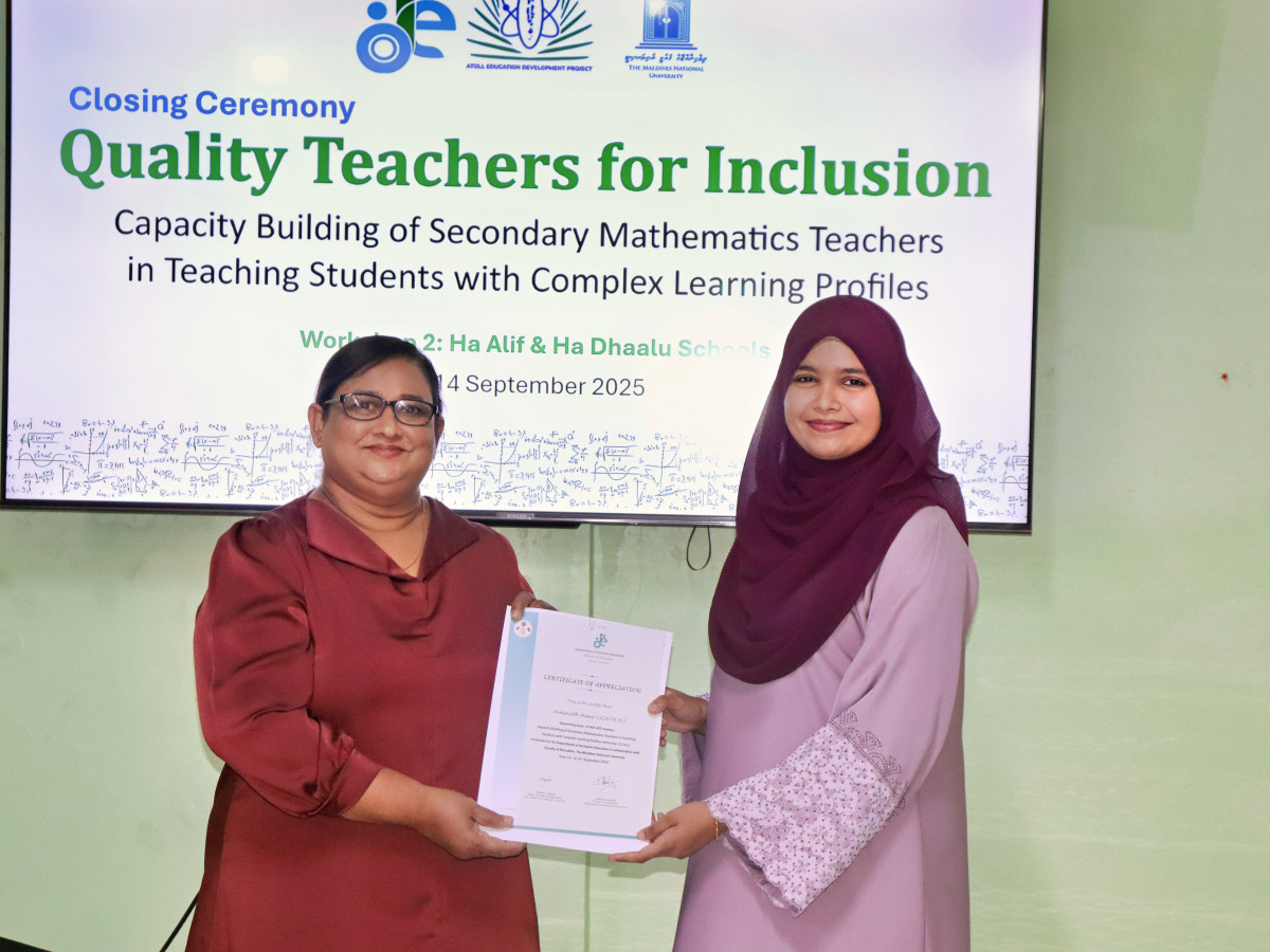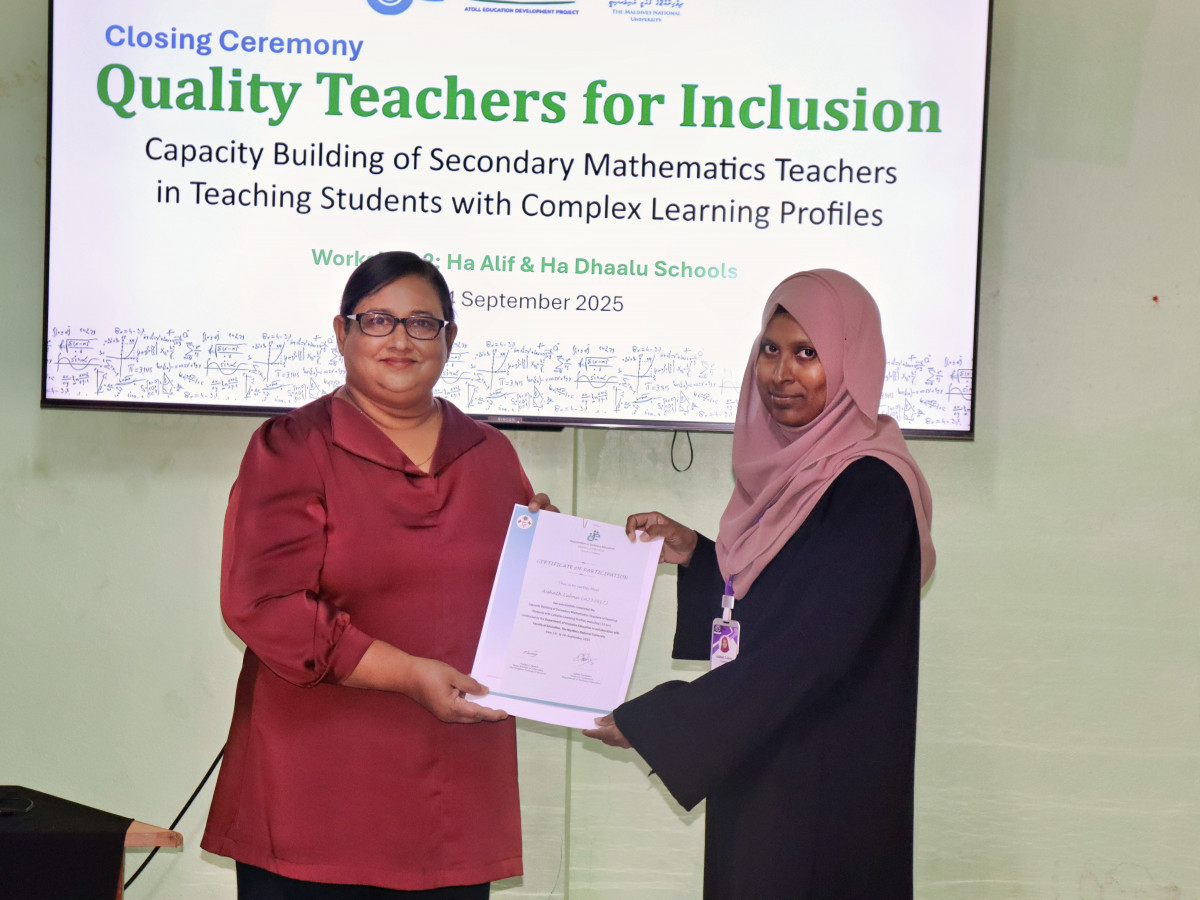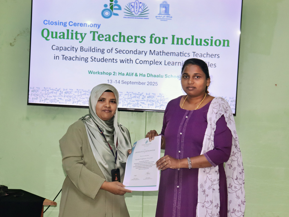 ސާނަވީ ސްކޫލްތަކުގައި ހިސާބު ކިޔަވާދޭ ޓީޗަރުންނަށް އަމާޒުކޮށްގެން ކުރިއަށް ގެންދިޔަ އުނގެނުމުގައި ޚާއްޞައެހީއަށް ބޭނުންވާ ދަރިވަރުންނަށް އުނގަންނާދޭނެ ގޮތުގެ ތަމްރީނު ޕްރޮގްރާމް (ހއ ހދ)