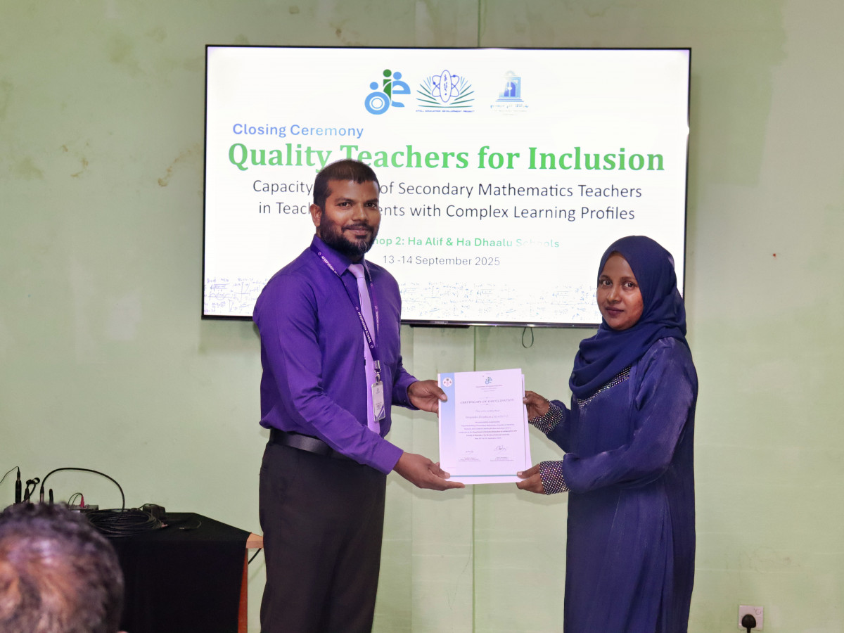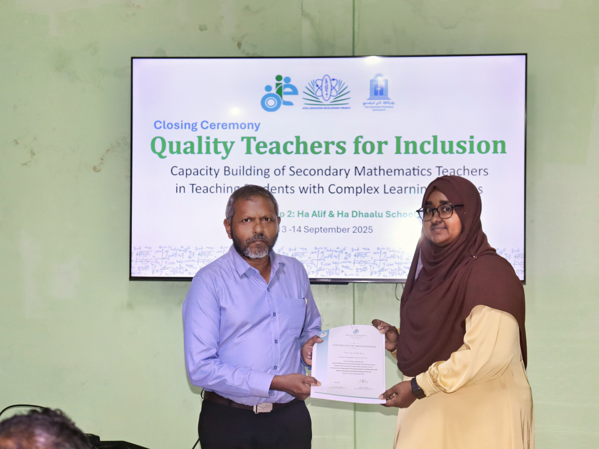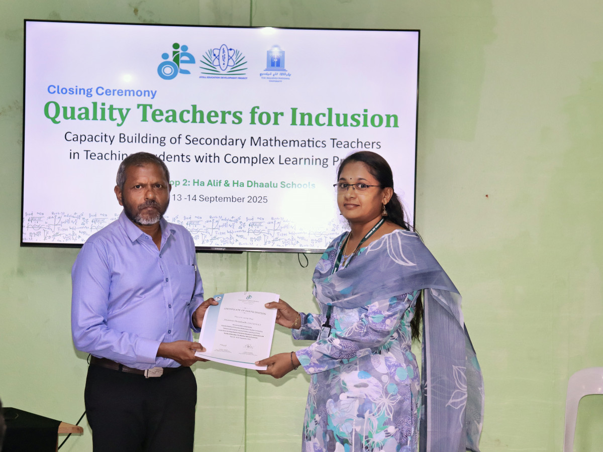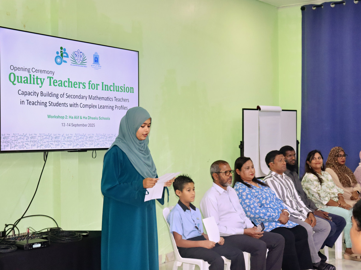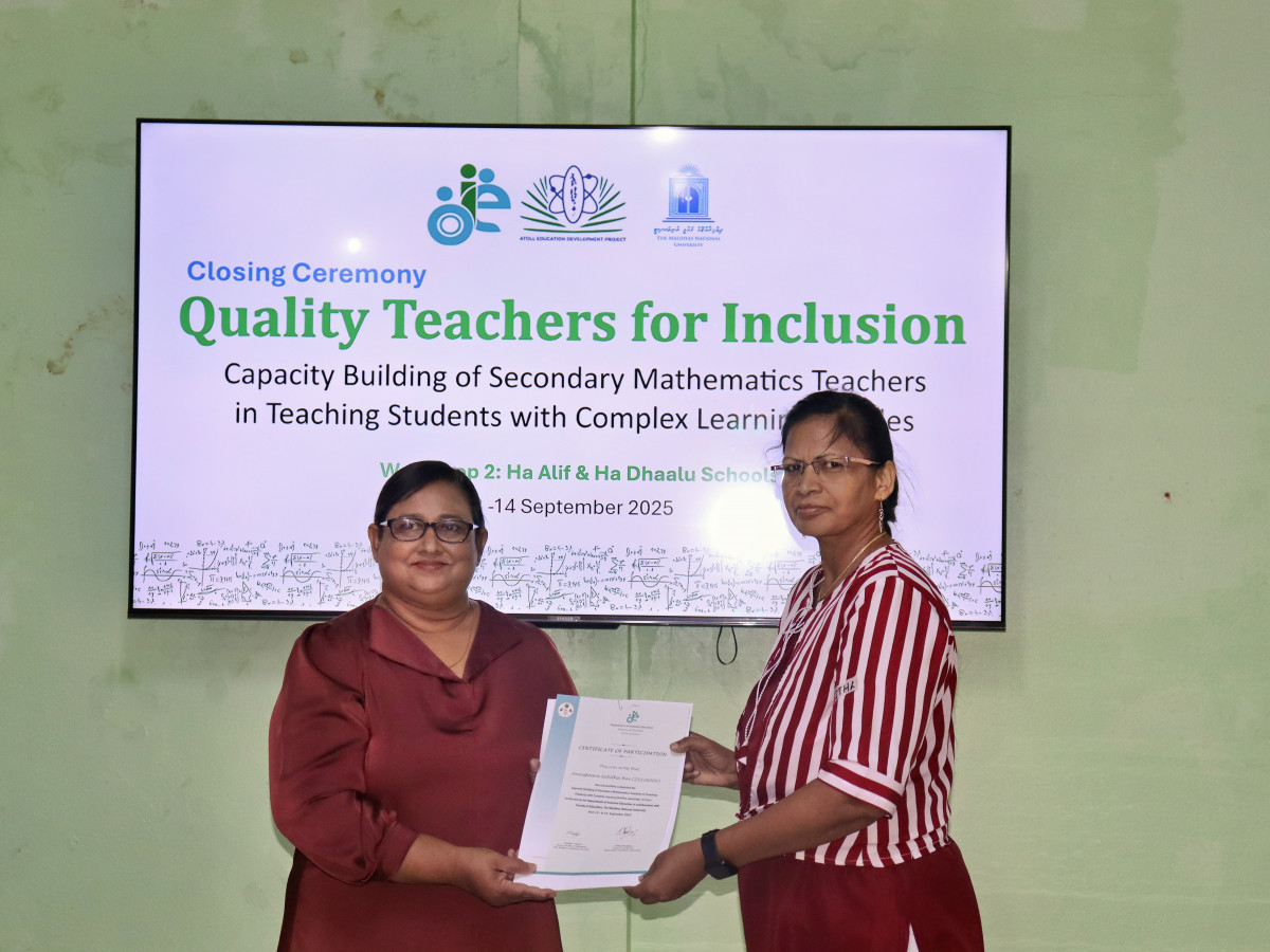 ސާނަވީ ސްކޫލްތަކުގައި ހިސާބު ކިޔަވާދޭ ޓީޗަރުންނަށް އަމާޒުކޮށްގެން ކުރިއަށް ގެންދިޔަ އުނގެނުމުގައި ޚާއްޞައެހީއަށް ބޭނުންވާ ދަރިވަރުންނަށް އުނގަންނާދޭނެ ގޮތުގެ ތަމްރީނު ޕްރޮގްރާމް (ހއ ހދ)