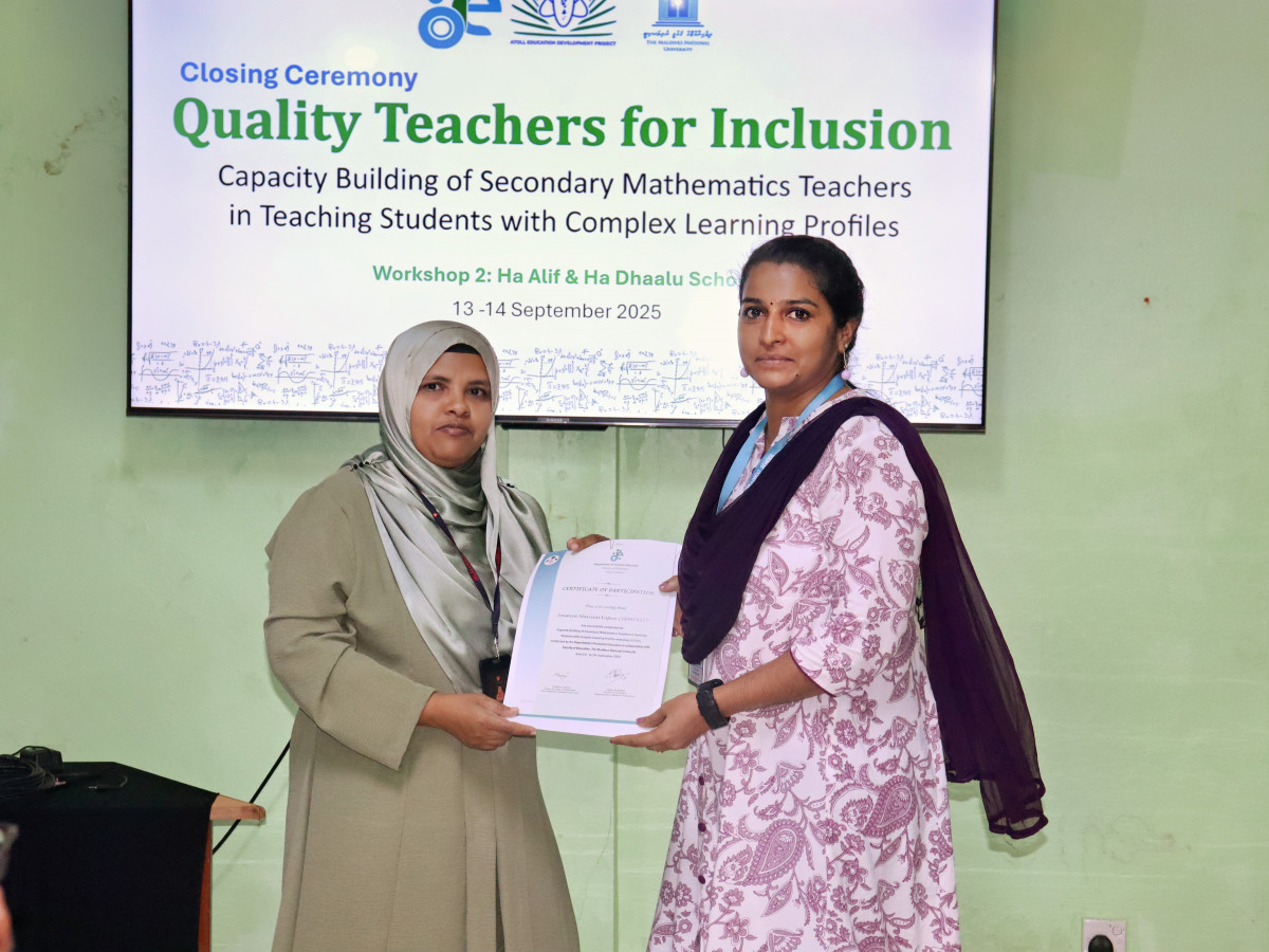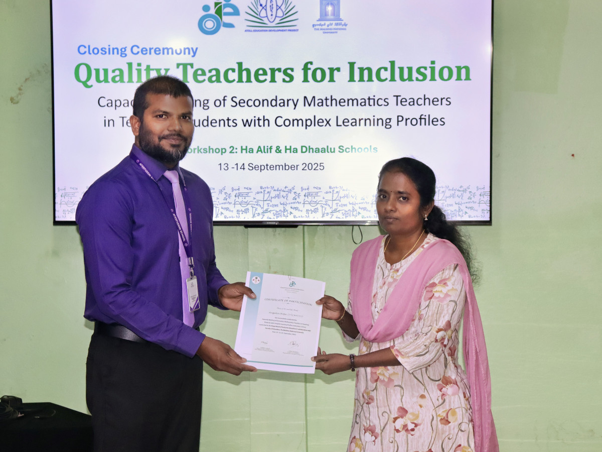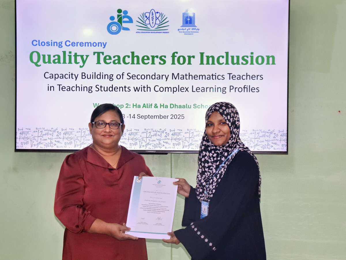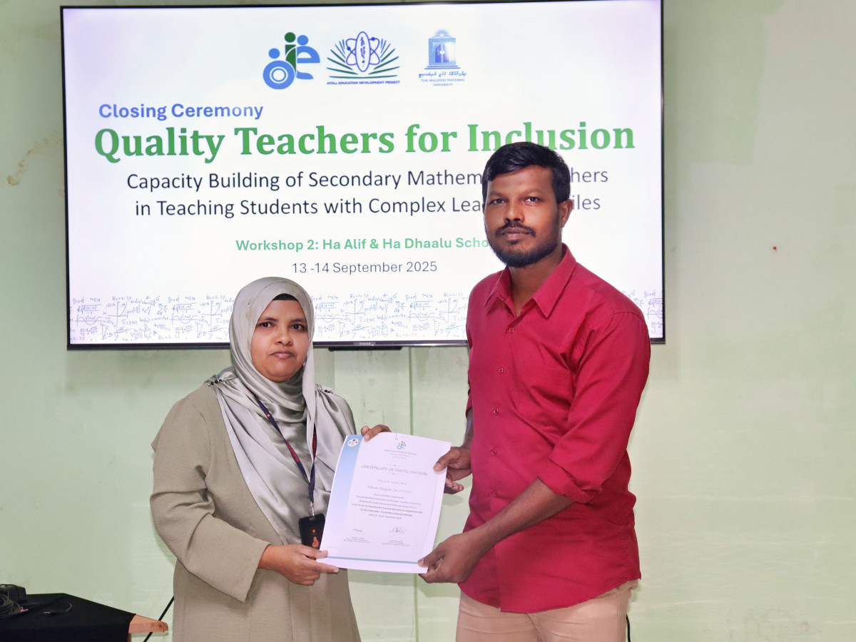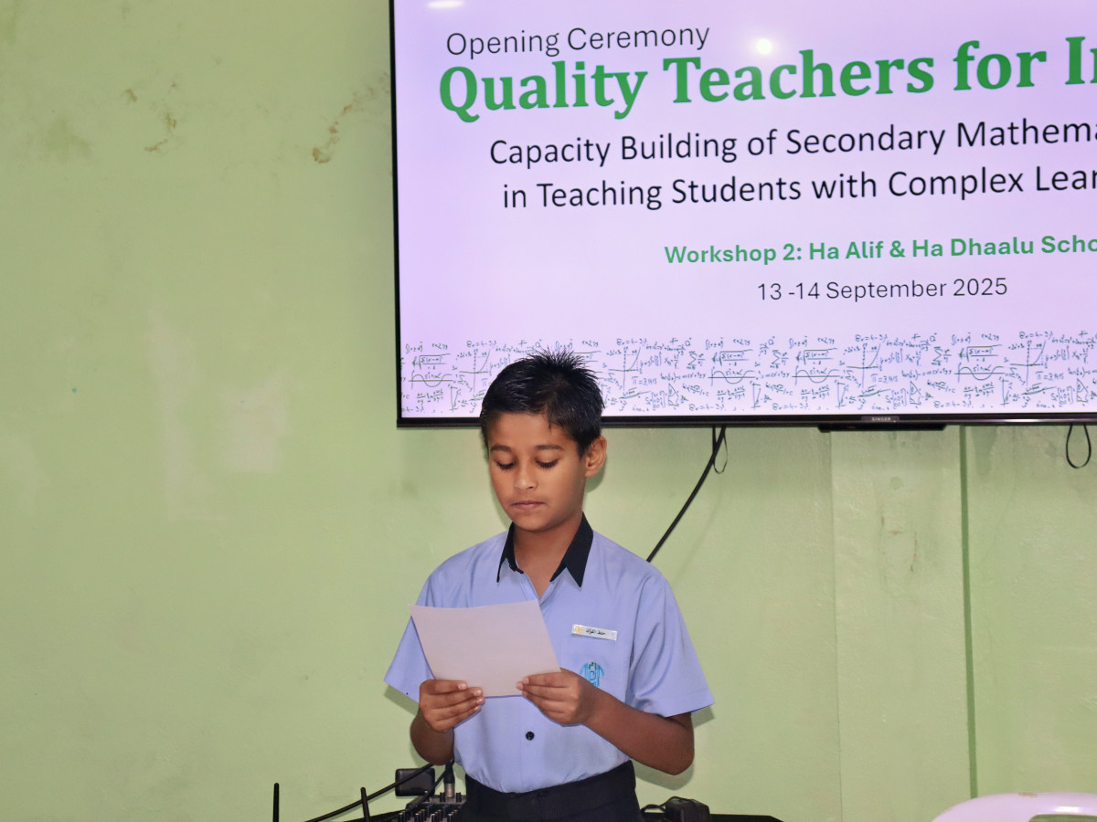 ސާނަވީ ސްކޫލްތަކުގައި ހިސާބު ކިޔަވާދޭ ޓީޗަރުންނަށް އަމާޒުކޮށްގެން ކުރިއަށް ގެންދިޔަ އުނގެނުމުގައި ޚާއްޞައެހީއަށް ބޭނުންވާ ދަރިވަރުންނަށް އުނގަންނާދޭނެ ގޮތުގެ ތަމްރީނު ޕްރޮގްރާމް (ހއ ހދ)
