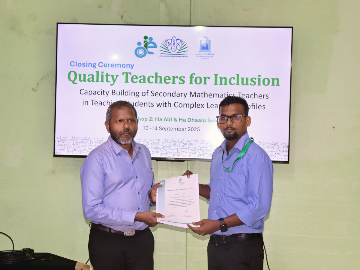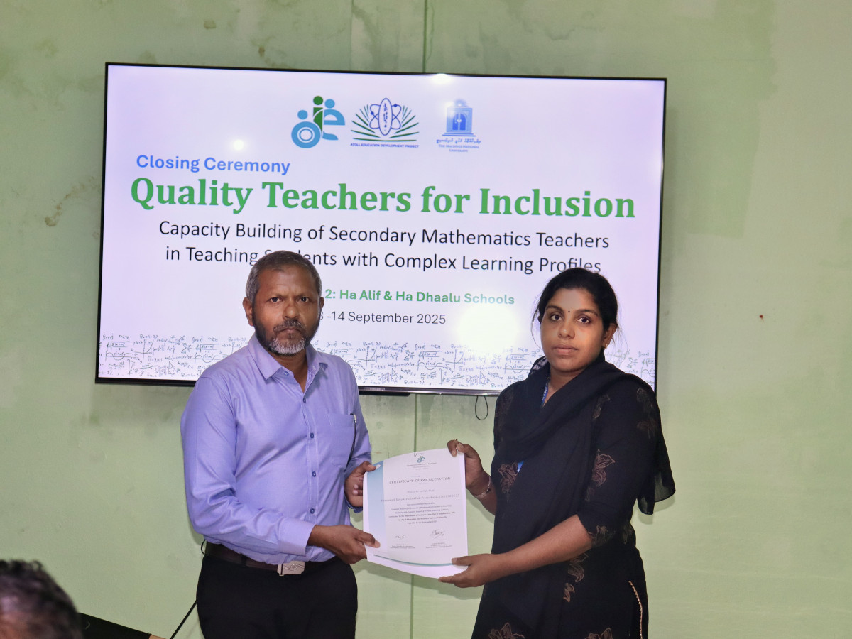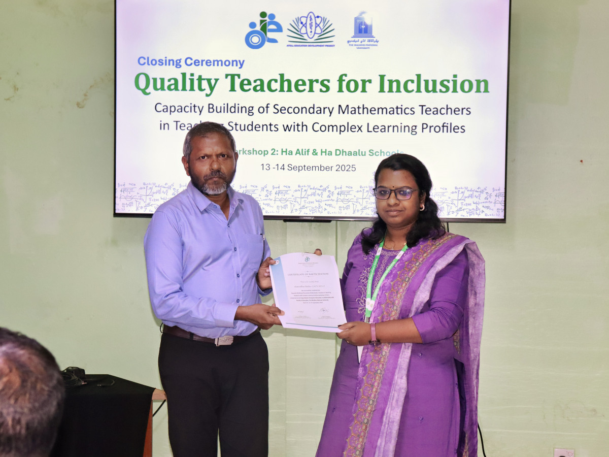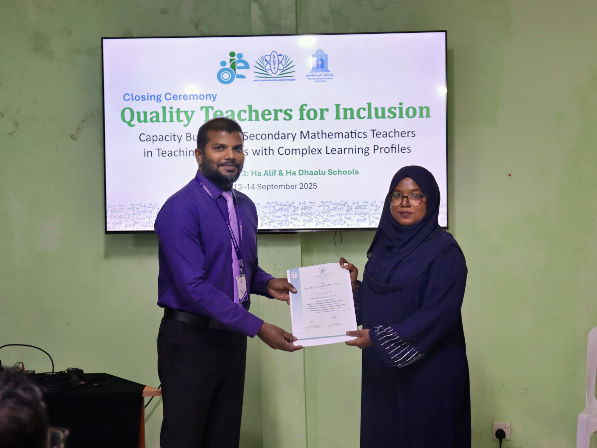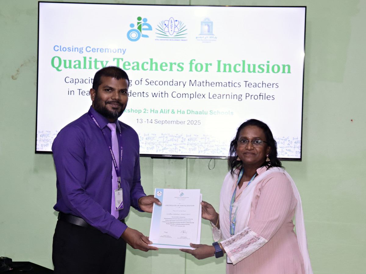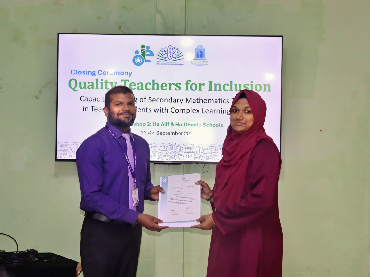 ސާނަވީ ސްކޫލްތަކުގައި ހިސާބު ކިޔަވާދޭ ޓީޗަރުންނަށް އަމާޒުކޮށްގެން ކުރިއަށް ގެންދިޔަ އުނގެނުމުގައި ޚާއްޞައެހީއަށް ބޭނުންވާ ދަރިވަރުންނަށް އުނގަންނާދޭނެ ގޮތުގެ ތަމްރީނު ޕްރޮގްރާމް (ހއ ހދ)