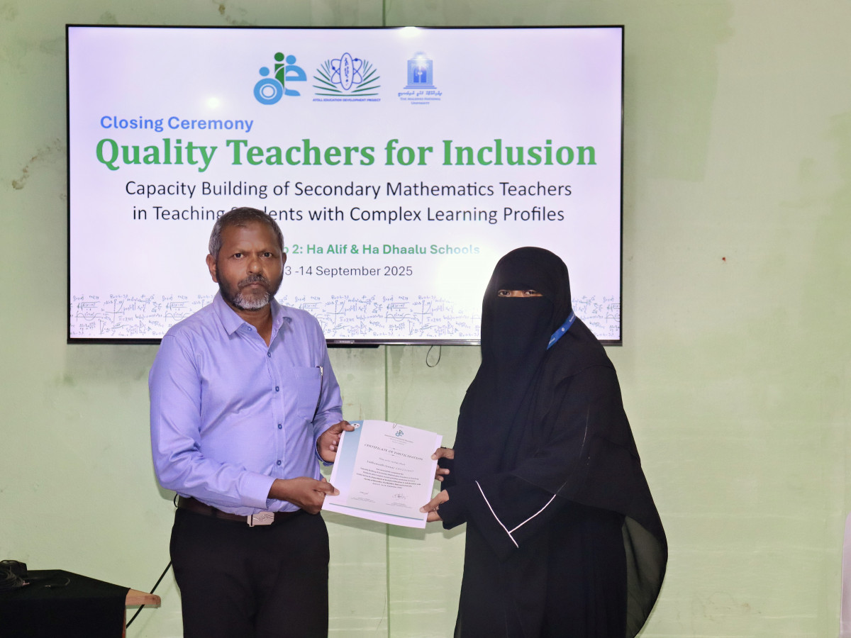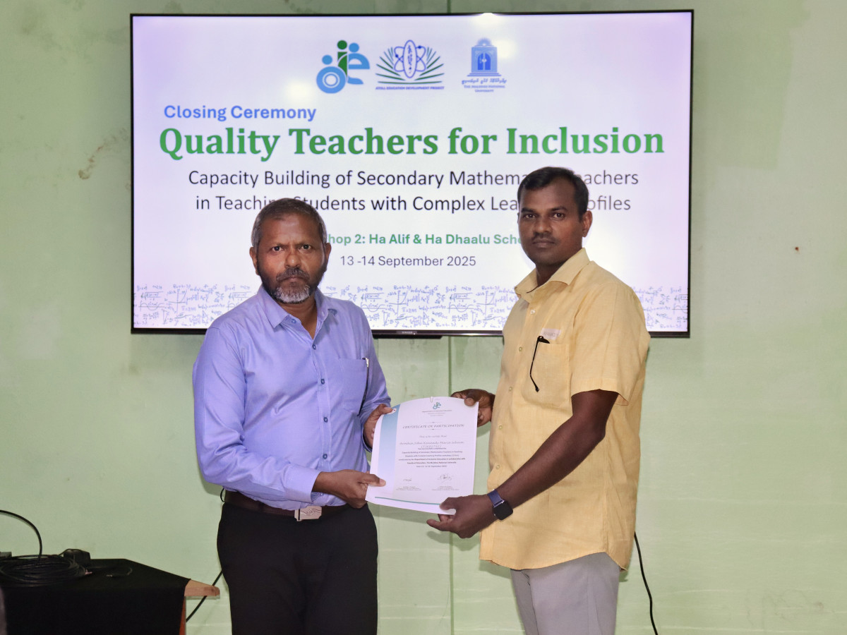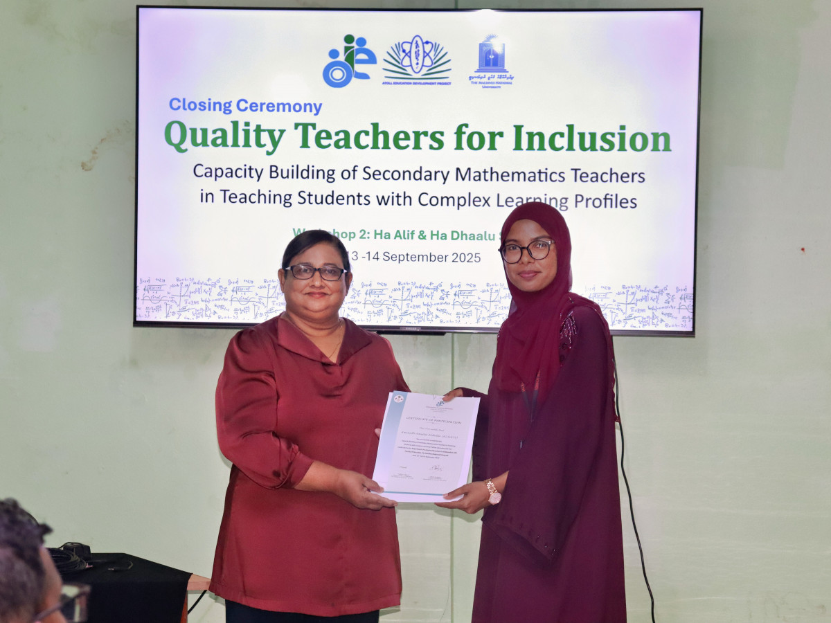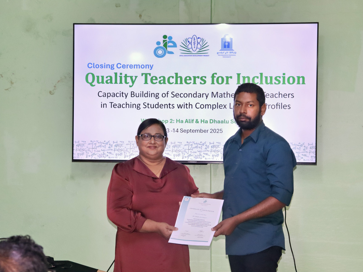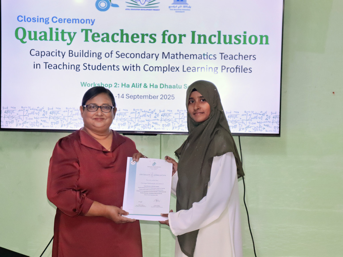 ސާނަވީ ސްކޫލްތަކުގައި ހިސާބު ކިޔަވާދޭ ޓީޗަރުންނަށް އަމާޒުކޮށްގެން ކުރިއަށް ގެންދިޔަ އުނގެނުމުގައި ޚާއްޞައެހީއަށް ބޭނުންވާ ދަރިވަރުންނަށް އުނގަންނާދޭނެ ގޮތުގެ ތަމްރީނު ޕްރޮގްރާމް (ހއ ހދ)
